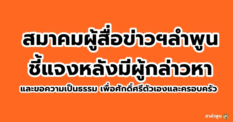 | • สมาคมผู้สื่อข่าวฯลำพูน ชี้แจงหลังมีผู้กล่าวหา และขอความเป็นธรรม เพื่อศักดิ์ศรีตัวเองและครอบครัว |