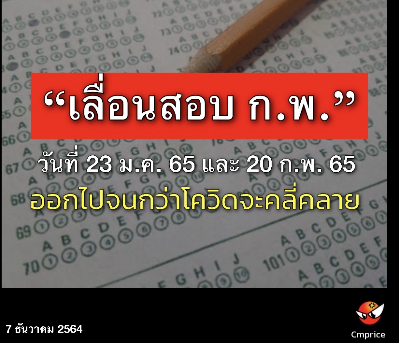 | • เลื่อนการสอบ ก.พ. วันที่ 23 ม.ค. 65 และ 20 ก.พ. 65 ออกไปจนกว่าโควิดจะคลี่คลาย |