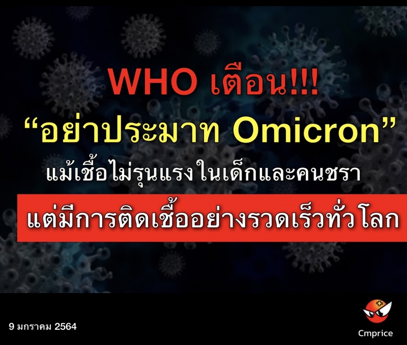 | • WHO เตือนอย่าประมาท Omicron แม้เชื้อไม่รุนแรงในเด็กและคนชรา แต่มีการติดเชื้ออย่างรวดเร็วทั่วโลก |