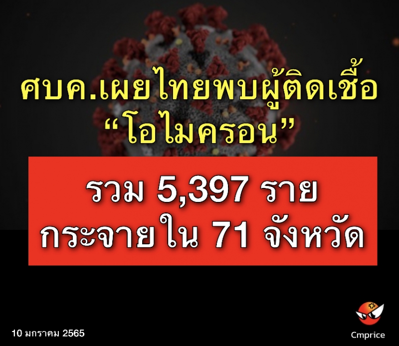 | • ศบค.เผยไทยพบผู้ติดเชื้อโอไมครอนรวม 5,397 ราย กระจายใน 71 จังหวัด |