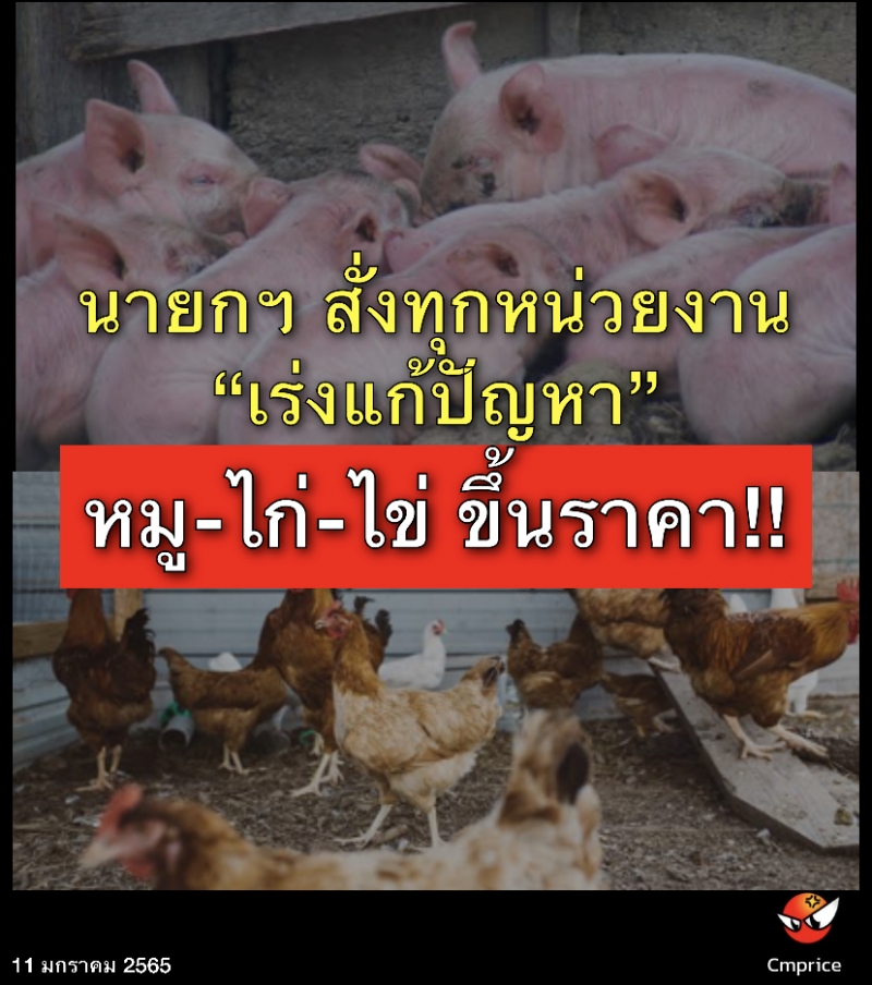| • นายกฯ สั่งทุกหน่วยงาน เร่งแก้ปัญหา หมู-ไก่-ไข่ ขึ้นราคา |