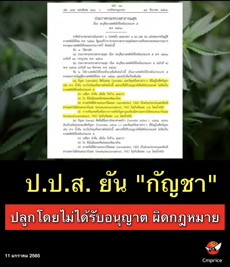 ป.ป.ส. ยัน "กัญชา" ปลูกโดยไม่ได้รับอนุญาต ผิดกฎหมาย