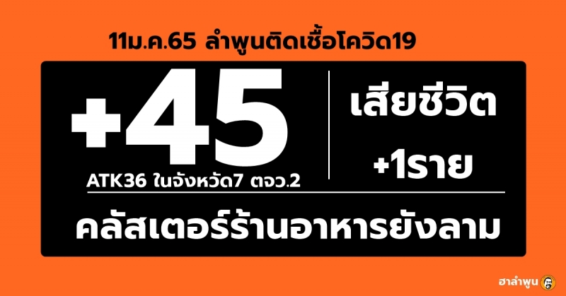 | • ลำพูนติดเชื้อเพิ่ม+45ราย เสียชีวิต1ราย คลัสเตอร์ร้านอาหารยังลาม - 11ม.ค.65 |