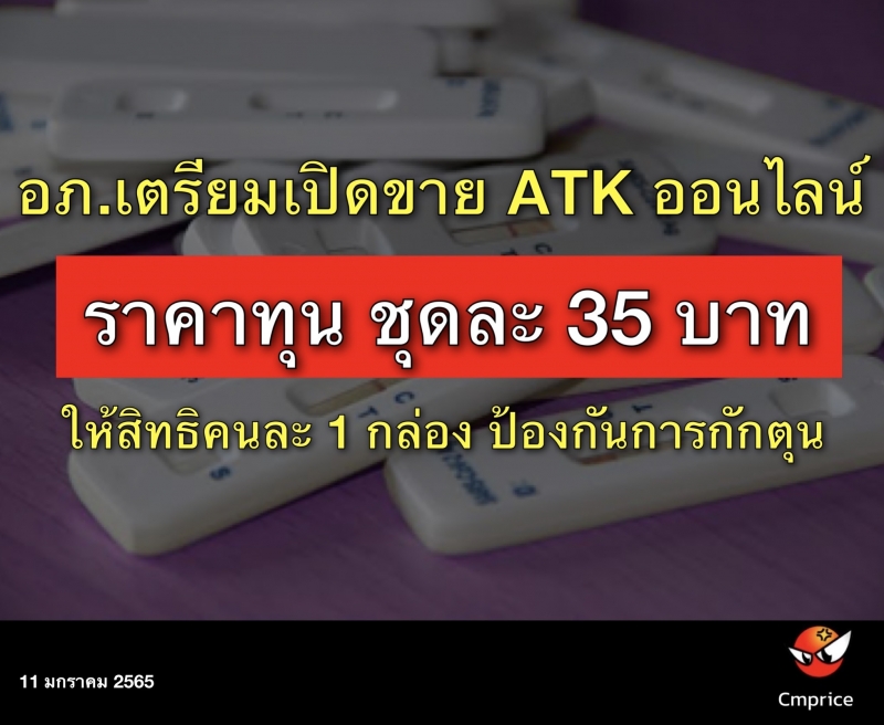 | • อภ.เตรียมเปิดขาย ATK ออนไลน์ ราคาทุน 35 บาท ให้สิทธิคนละ 1 กล่อง |