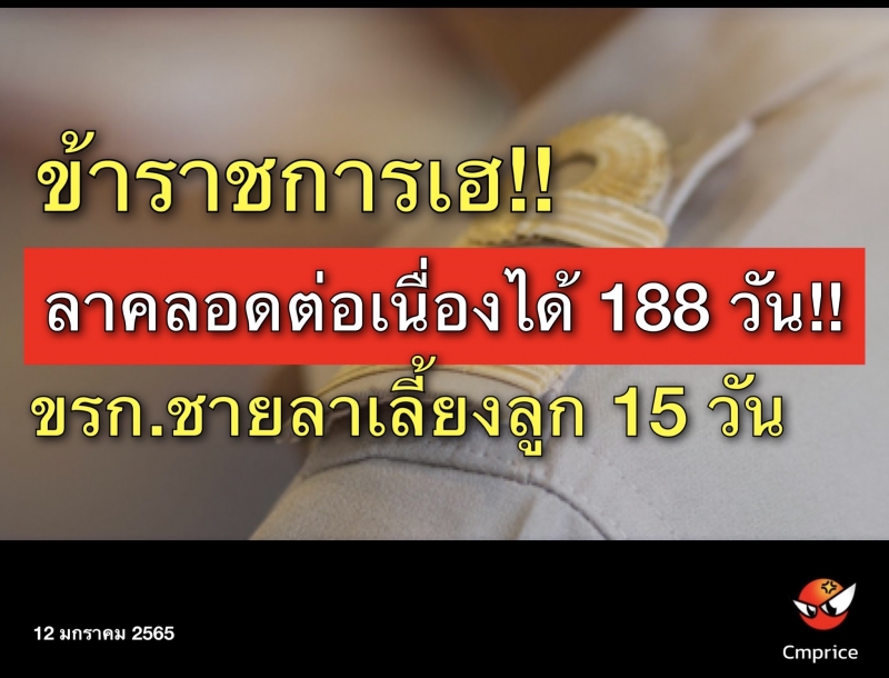 ข้าราชการเฮ! ลาคลอดต่อเนื่องได้ 188 วัน!! ขรก.ชายลาเลี้ยงลูก 15 วัน