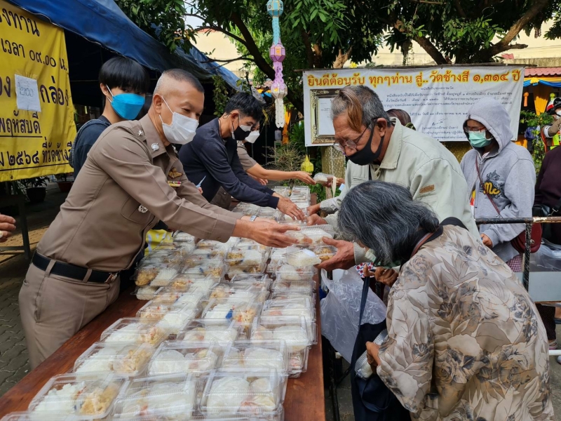 แจกข้าวกล่งฟรี ทุกเช้าวันพฤหัส @วัดช้างสี ในเมืองลำพูน