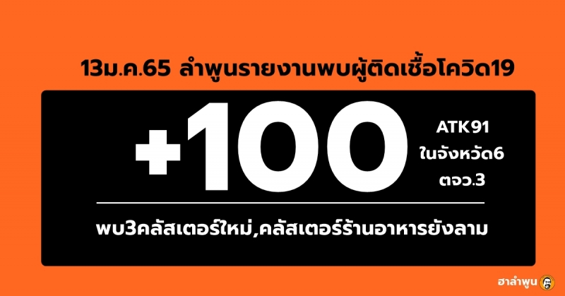 ลำพูนติดเชื้อเพิ่ม+100ราย , ATK91 จว.6 ตจว.3 ,พบ3คลัสเตอร์ใหม่,คลัสเตอร์ร้านอาหารยังลาม - 13ม.ค.65