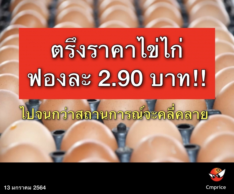 สมาคมผู้เลี้ยงไก่ไข่จับมือกรมการค้าภายในตรึงราคาไข่ไก่คละหน้าฟาร์มที่ 2.90 บาท ไปจนกว่าสถานการณ์จะคลี่คลาย