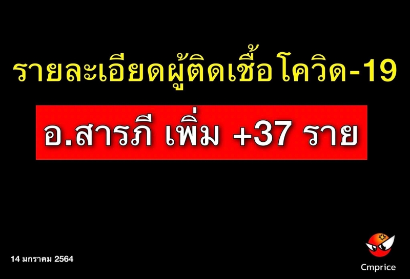 13 มกราคม 2565 งานควบคุมโรคติดต่อ สสอ.สารภี รายงานสถานการณ์โรคติดเชื้อไวรัสโคโรนา 2019 (COVID - 19) อำเภอสารภีเพิ่ม + 37 ราย