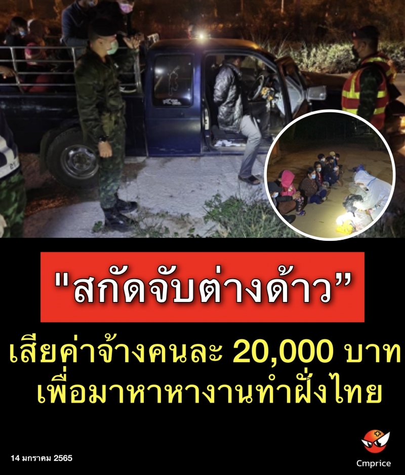 | • "สกัดจับต่างด้าวเสียค่าจ้างคนละ 20,000 บาท เพื่อมาหาหางานทำฝั่งไทย |