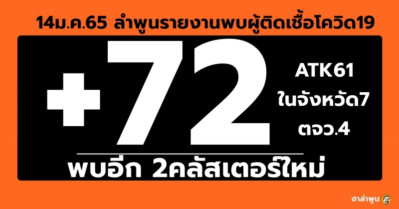| • ลำพูนติดเชื้อเพิ่ม+72ราย พบ2คลัสเตอร์ใหม่ - 14ม.ค.65 |