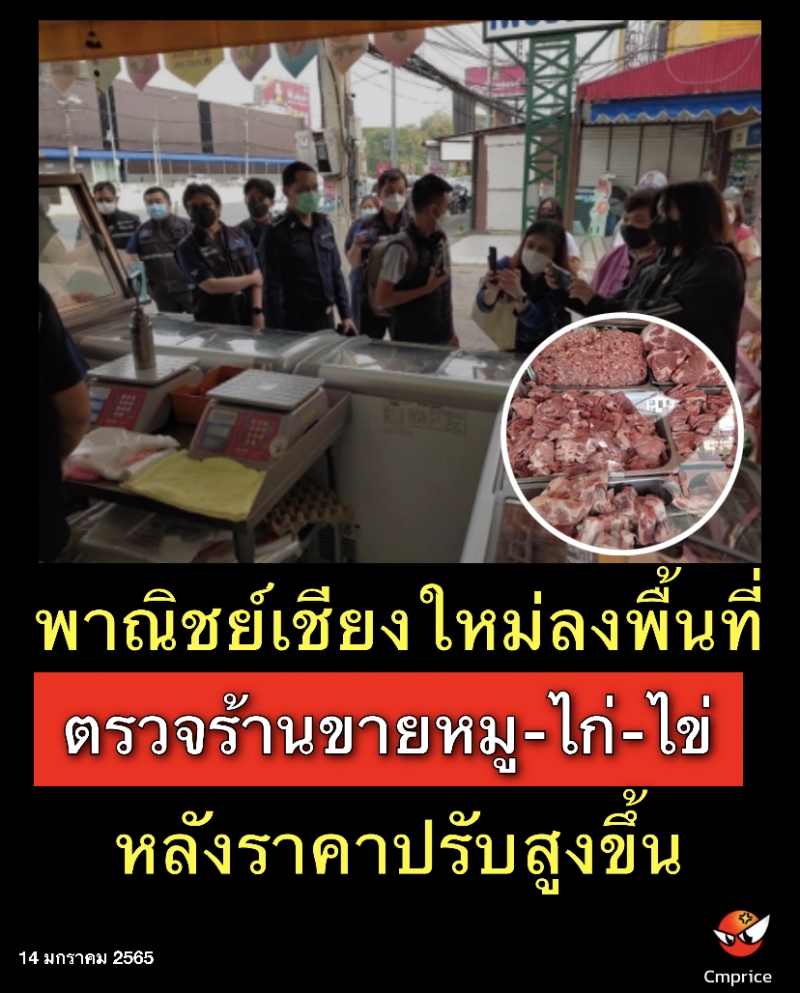 | • พาณิชย์เชียงใหม่ลงพื้นที่ตรวจร้านขายหมู-ไก่-ไข่ หลังราคาปรับสูงขึ้น |