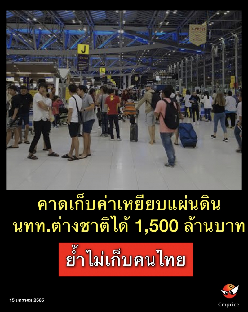 | • คาดเก็บค่าเหยียบแผ่นดินจากนักท่องเที่ยวต่างชาติได้ประมาณ 1,500 ล้านบาท ย้ำไม่เก็บคนไทย |