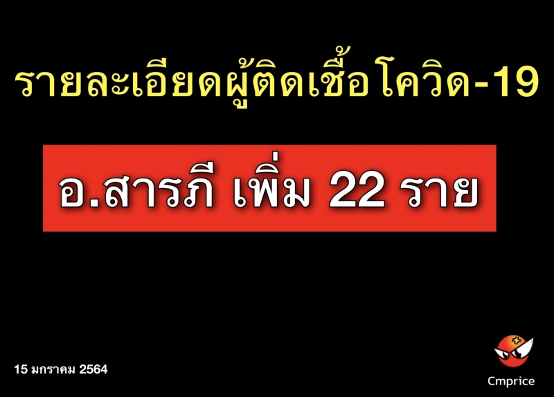 15 มกราคม 2565 งานควบคุมโรคติดต่อ สสอ.สารภี รายงานสถานการณ์โรคติดเชื้อไวรัสโคโรนา 2019 (COVID - 19) อำเภอสารภี เพิ่ม + 22 ราย