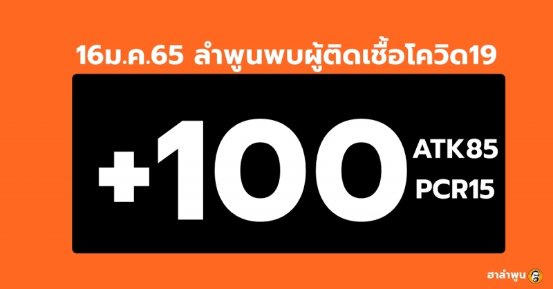 16 ม.ค. 65 เพจศูนย์ข่าวโควิด 19 ลำพูน แถลงสถานการณ์โควิด-19 จ.ลำพูน โดยเป็นข้อมูล ณ เมื่อวานนี้ เวลา 16.00น. พบผู้ติดเชื้อเพิ่ม 100ราย แบ่งเป็นการตรวจ RT-PCR ในจังหวัด 15ราย เป็นการตรวจ ATK85ราย (สามารถดูและฟังแถลง ได้ข้างล่าง )