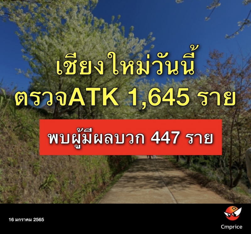 เชียงใหม่วันนี้ ตรวจATK 1,645 ราย พบผู้มีผลบวก 447 ราย