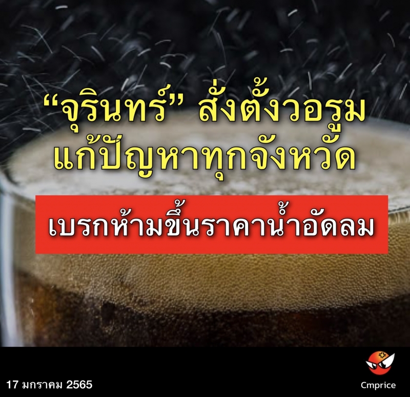| • จุรินทร์ เบรกห้ามขึ้นราคาน้ำอัดลม สั่งตั้งวอรูม แก้ปัญหาทุกจังหวัด |