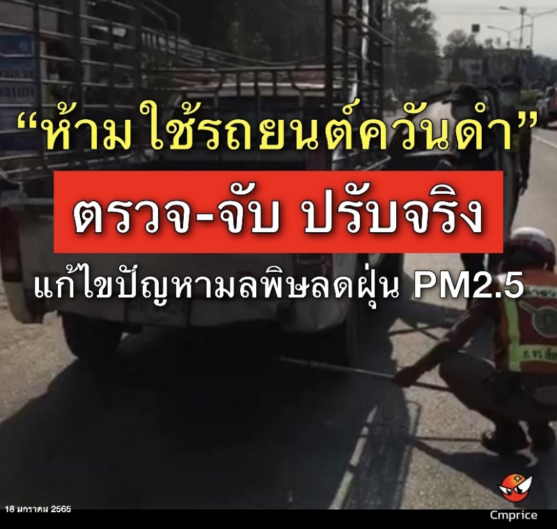 | • เน้นย้ำ!!! ตรวจ-จับ ปรับจริง ห้ามใช้รถยนต์ควันดำลดฝุ่น PM2.5 |