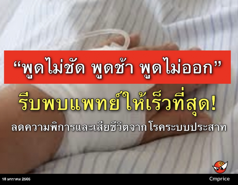 | • พูดไม่ชัด พูดช้า พูดไม่ออก รีบพบแพทย์ให้เร็วที่สุดลดความพิการและเสียชีวิตจากโรคระบบประสาท ขอบคุณ |