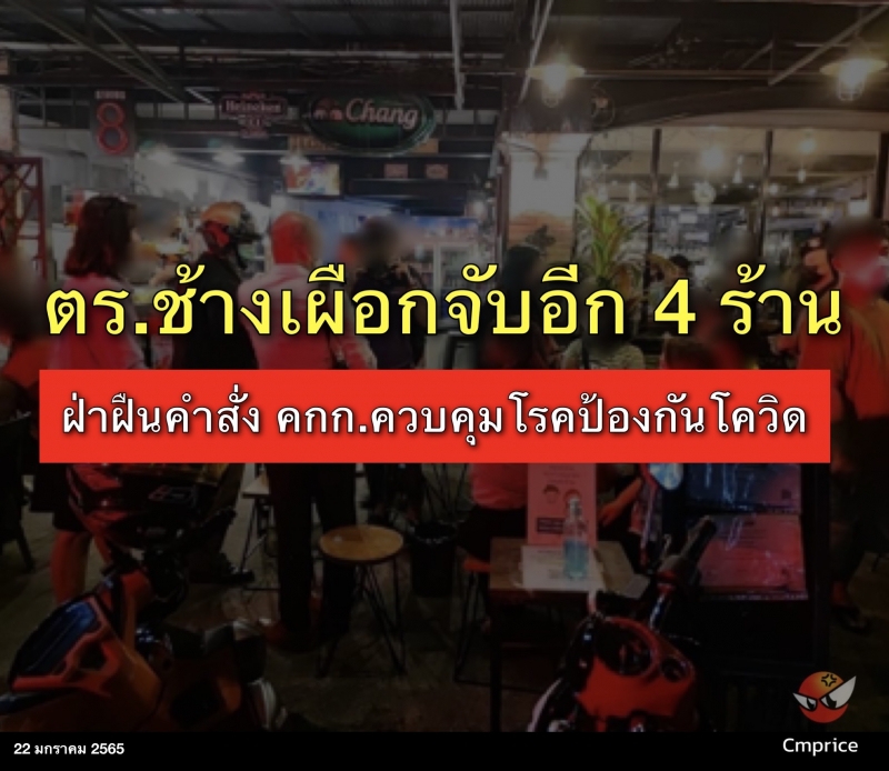 ตร.ช้างเผือกจับอีก 4 ร้าน ฝ่าฝืนคำสั่ง คกก.ควบคุมโรคป้องกันโควิด-19
