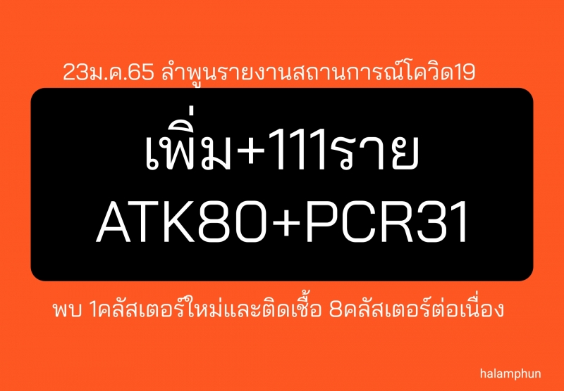 | • ลำพูนติดเชื้อเพิ่ม+111ราย พบคลัสเตอร์ใหม่ และติดเชื้อ8คลัสเตอร์ต่อเนื่อง - 23ม.ค.65 |