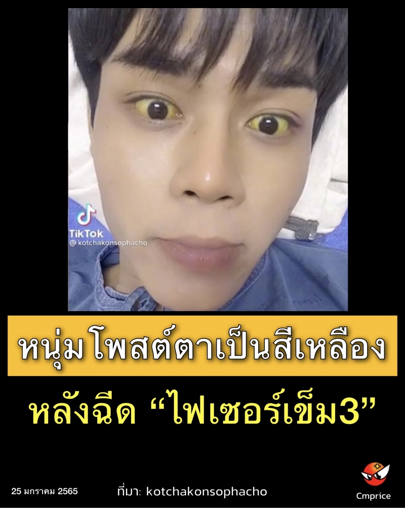 หนุ่มโพสต์ตาเป็นสีเหลืองหลังฉีด “ไฟเซอร์เข็ม3” หมอแจงผลข้างเคียงจากวัคซีน สามารถหายกลับมาเป็นปกติได้