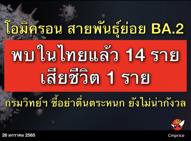 | • โอมิครอน สายพันธุ์ย่อย BA.2 ล่าสุดพบในไทยแล้ว 14 ราย เสียชีวิต 1 ราย |