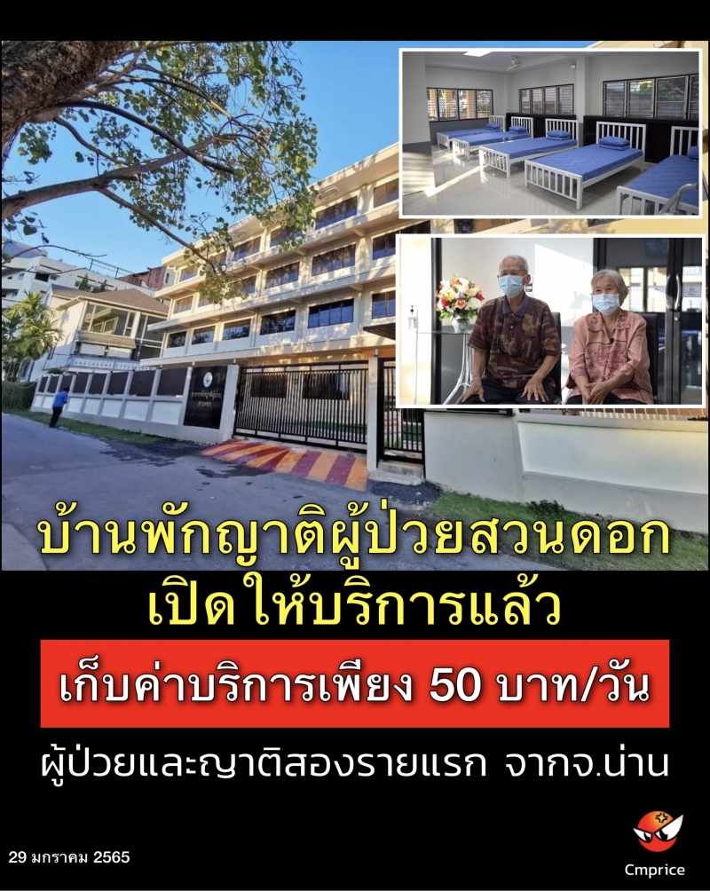 | • บ้านพักญาติผู้ป่วยสวนดอก เปิดให้บริการแล้ว เก็บค่าบริการเพียงวันละ 50 บาท ผู้ป่วยและญาติสองรายแรก จากจ.น่าน |