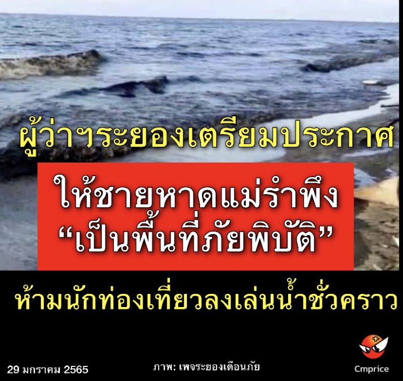 | • ผู้ว่าฯระยอง เตรียมประกาศให้ชายหาดแม่รำพึงเป็นพื้นที่ภัยพิบัติ และห้ามนักท่องเที่ยวลงเล่นน้ำชั่วคราว |
