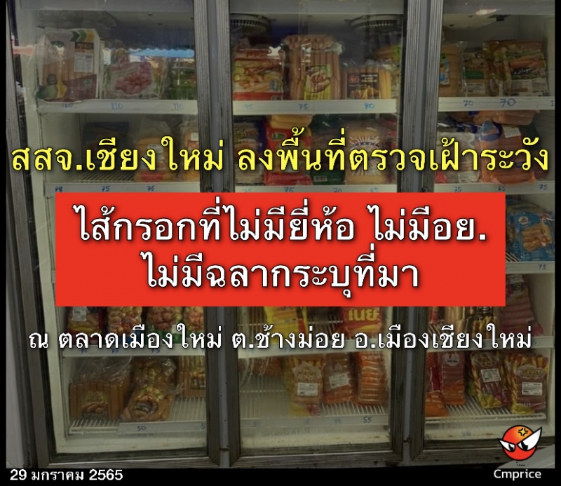 สสจ.เชียงใหม่ ลงพื้นที่ตรวจเฝ้าระวังไส้กรอกที่ไม่มียี่ห้อ ไม่มีอย. ไม่มีฉลากระบุที่มา