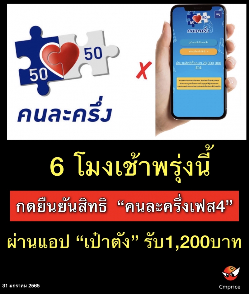| • 6 โมงเช้าพรุ่งนี้ กดยืนยันสิทธิ คนละครึ่งเฟส4 ผ่านแอป เป๋าตัง รับ1,200 บาท |