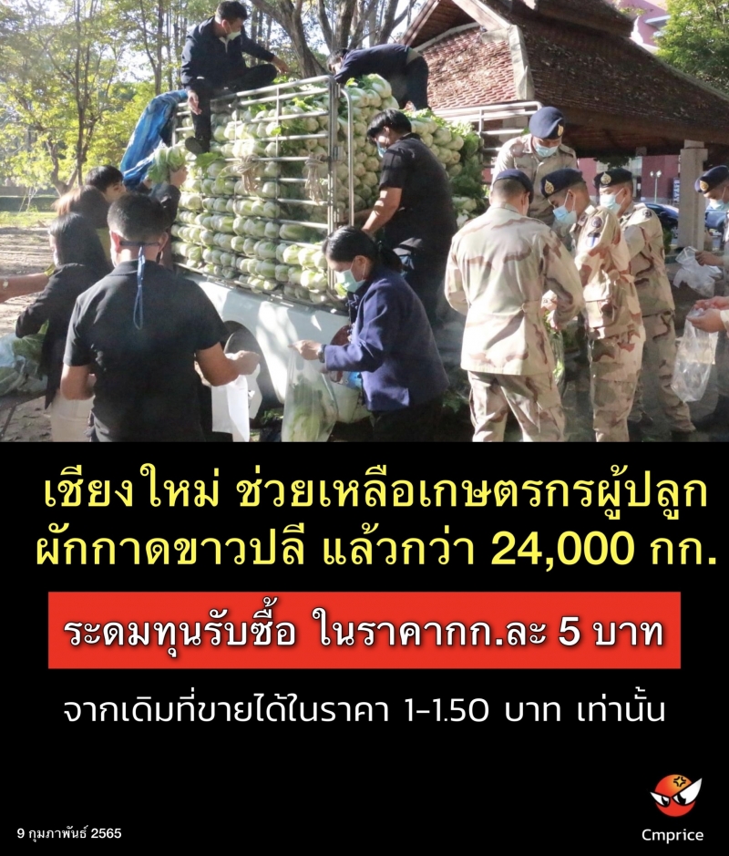 | • เชียงใหม่ ช่วยเหลือเกษตรกรผู้ปลูกผักกาดขาวปลี แล้วกว่า 24,000 กิโลกรัม |
