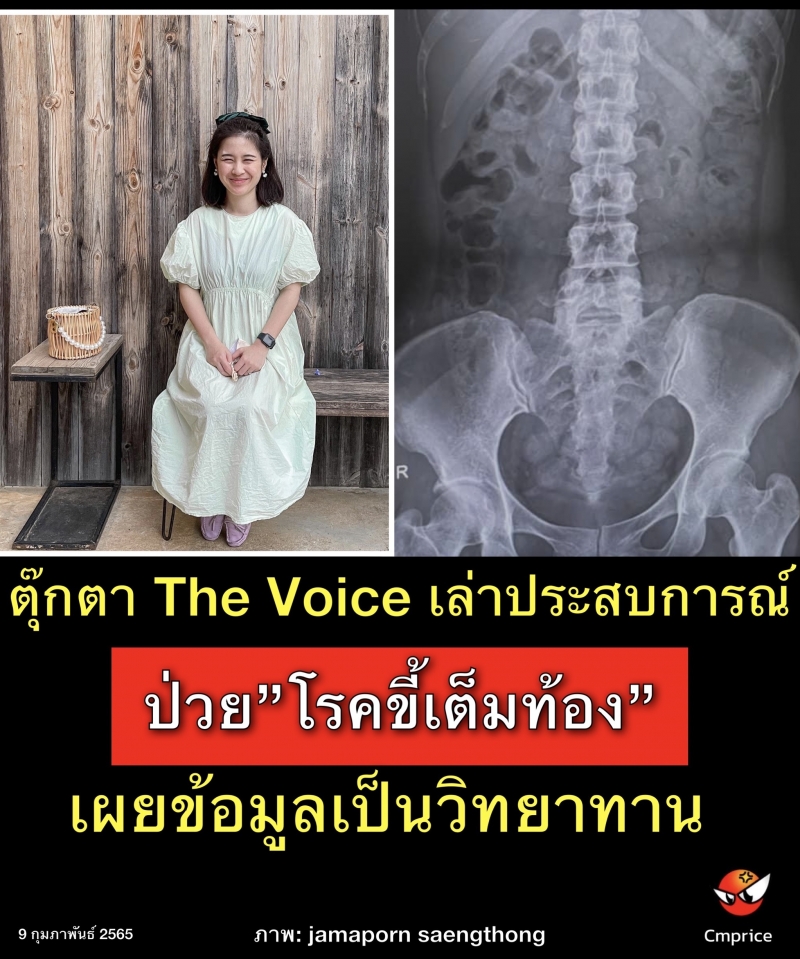 นักร้องสาวสวย "ตุ๊กตา จมาพร" หรือ "ตุ๊กตา The Voice" ที่ได้โพสต์ข้อความในเฟซบุ๊กเล่าเกี่ยวกับอาการป่วย"โรคขี้เต็มท้อง" คุณตุ๊กตา เธอเล่าว่า