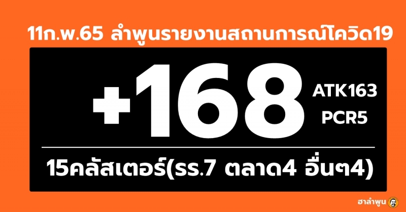 ลำพูนติดเชื้อเพิ่ม+168ราย ลาม15คลัสเตอร์ - 11ก.พ.65