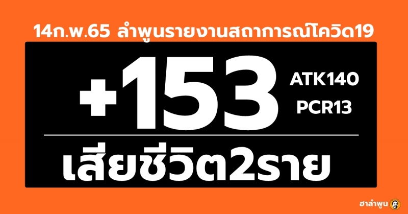 14 ก.พ. 65 เพจศูนย์ข่าวโควิด 19 ลำพูน แถลงสถานการณ์โควิด-19 จ.ลำพูน โดยเป็นข้อมูล ณ เมื่อวานนี้ เวลา 16.00น. พบผู้ติดเชื้อเพิ่ม 174ราย แบ่งเป็นการตรวจ RT-PCR ในจังหวัด 12ราย เป็นการตรวจ ATK 157ราย และ จากต่างจังหวัด 1ราย และน่าเศร้าใจ วันนี้มีผู้เสียชีวิต 2ราย
