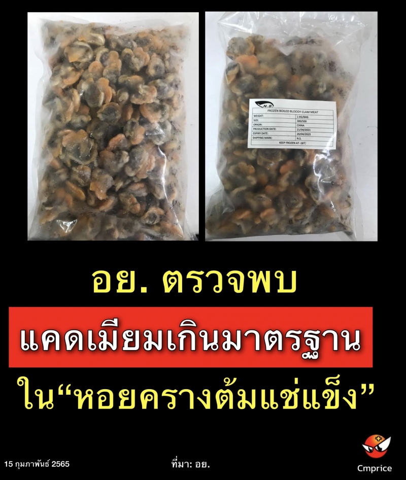 | • อย. ตรวจพบปริมาณแคดเมียมเกินมาตรฐานในผลิตภัณฑ์หอยครางต้มแช่แข็ง |
