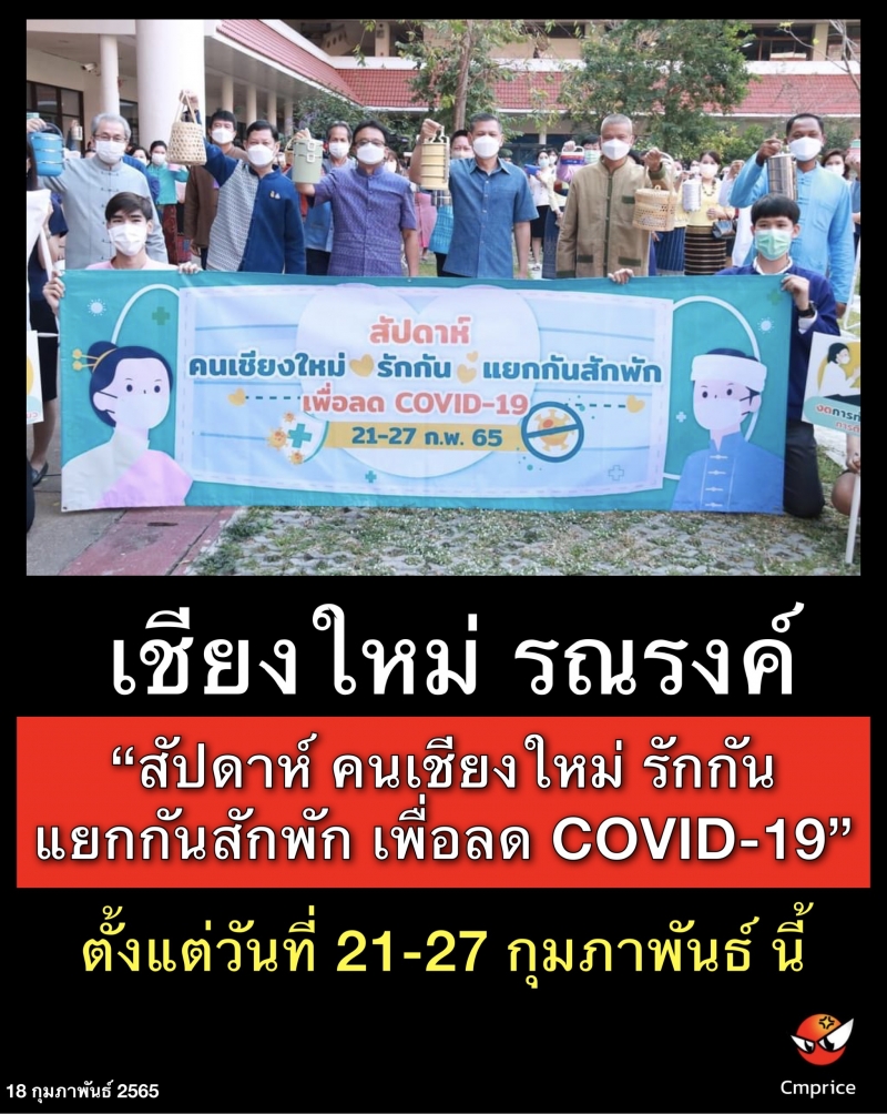 จังหวัดเชียงใหม่ รณรงค์ “สัปดาห์ คนเชียงใหม่ รักกัน แยกกันสักพัก เพื่อลด COVID-19” ตั้งแต่วันที่ 21-27 กุมภาพันธ์ นี้  เพื่อลดจำนวนผู้ติดเชื้อรายใหม่ลง ตลอดจนสร้างความตระหนักให้เห็นถึงความสำคัญของมาตรการการป้องกันโรคส่วนบุคคล