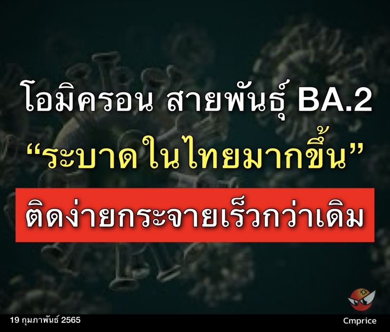 | • โอมิครอน สายพันธุ์ BA.2 ระบาดในไทยมากขึ้น ติดง่ายกระจายเร็วกว่าเดิม |