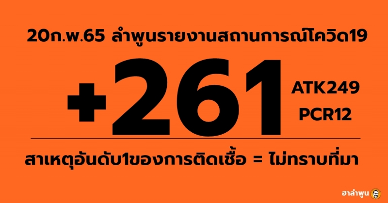 ลำพูนติดเชื้อเพิ่ม261ราย ,สาเหตุอันดับ1ของติดเชื้อคือ ไม่ทราบที่มา - 20ก.พ.65