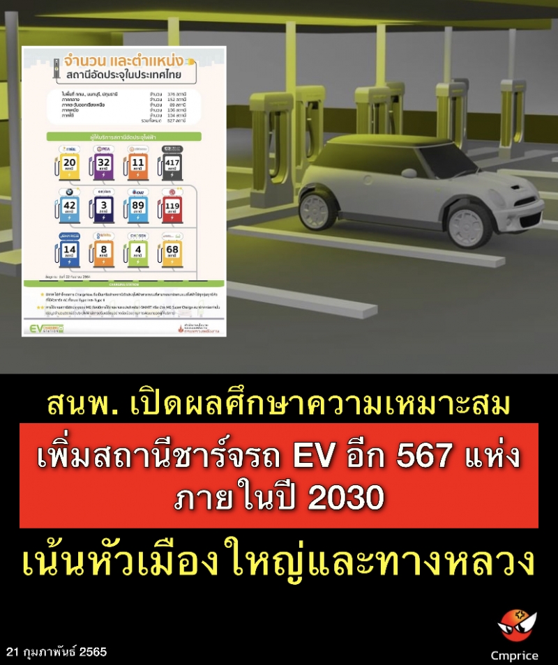 สนพ. เปิดผลศึกษาความเหมาะสมเพิ่มสถานีชาร์จรถ EV อีก 567 แห่ง ภายในปี 2030 เน้นหัวเมืองใหญ่และทางหลวง