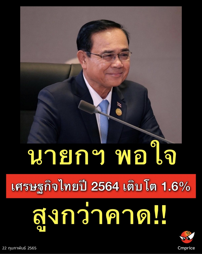 นายกรัฐมนตรีพอใจกับการขยายตัวทางเศรษฐกิจในปี 2564 ซึ่งเป็นปีที่ประเทศไทยเผชิญกับแรงกดดันจากการแพร่ระบาดของโควิด-19 ที่รุนแรงเช่นเดียวกับทุกประเทศทั่วโลก โดยรัฐบาลได้พยายามทุกวิถีทางอย่างเต็มที่ในการดูแลชีวิตและความเป็นอยู่ของประชาชนในช่วงเวลาที่ยากลำบาก
