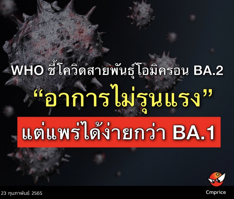 | • องค์การอนามัยโลกชี้ โควิดสายพันธุ์โอมิครอน BA.2 อาการไม่รุนแรง แต่แพร่ได้ง่ายกว่า BA.1 |
