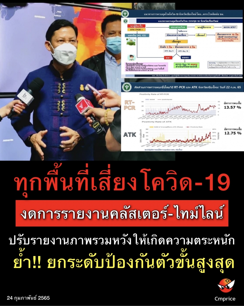 | • ทุกพื้นที่เสี่ยงโควิด-19 งดการรายงานคลัสเตอร์-ไทม์ไลน์ปรับรายงานภาพรวมหวังให้เกิดความตระหนักย้ำ!! ยกระดับป้องกันตัวขั้นสูงสุด |