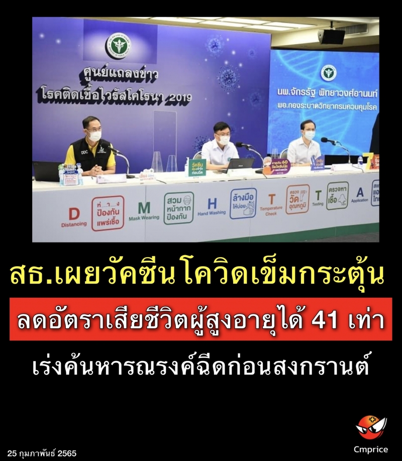 | • สธ.เผยวัคซีนโควิดเข็มกระตุ้น ลดอัตราเสียชีวิตผู้สูงอายุได้ 41 เท่า เร่งค้นหารณรงค์ฉีดก่อนสงกรานต์ |