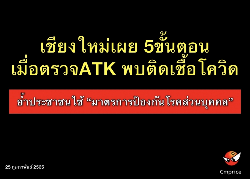 ส่วนกรณีที่มีข่าวถึงการรายงานยอดผู้ป่วยโควิด-19 แยกเป็น 2 กลุ่ม เป็นกลุ่ม PCR และกลุ่ม ATK นั้น ได้ชี้แจงว่าปัจจุบันมีการตรวจหาเชื้อโควิด-19 จำนวน 2 วิธี คือ วิธี RT-PCR ซึ่งเป็นวิธีที่แม่นยำ ค่าใช้จ่ายสูง ใช้เวลาตรวจนานแต่ละครั้งตรวจได้จำนวนน้อยและต้องใช้เครื่องตรวจ จึงจะใช้วิธีนี้ในกลุ่มผู้ป่วยที่มีอาการเป็นหลัก และเรียกผู้ที่มีผลบวกว่า "ผู้ป่วยยืนยัน" อีกวิธีคือ ATK เป็นวิธีที่ตรวจโดยใช้แถบตรวจสำเร็จ ความแม่นยำปานกลาง ราคาถูก รู้ผลทันที ตรวจได้ในปริมาณมาก ตรวจได้ทุกที่ ไม่ต้องใช้เครื่องตรวจ ปัจจุบันใช้ในการตรวจภาคสนาม เน้นกลุ่มเสี่ยงสูงที่ไม่มีอาการ เนื่องจากมีปริมาณมากและสามารถตรวจได้ทุกที่ และเรียกผู้ที่มีผลบวกว่า "ผู้ป่วยเข้าข่าย" พร้อมให้การรักษาด้วยระบบ Home Isolation หรือ Community Isolation ได้ทันที จังหวัดเชียงใหม่ จึงได้มีการรายงานยอดผู้ป่วยประจำวันจากการตรวจทั้ง 2 วิธี ให้ประชาชนทราบ เพื่อสร้างความตระหนักและป้องกันตนเอง