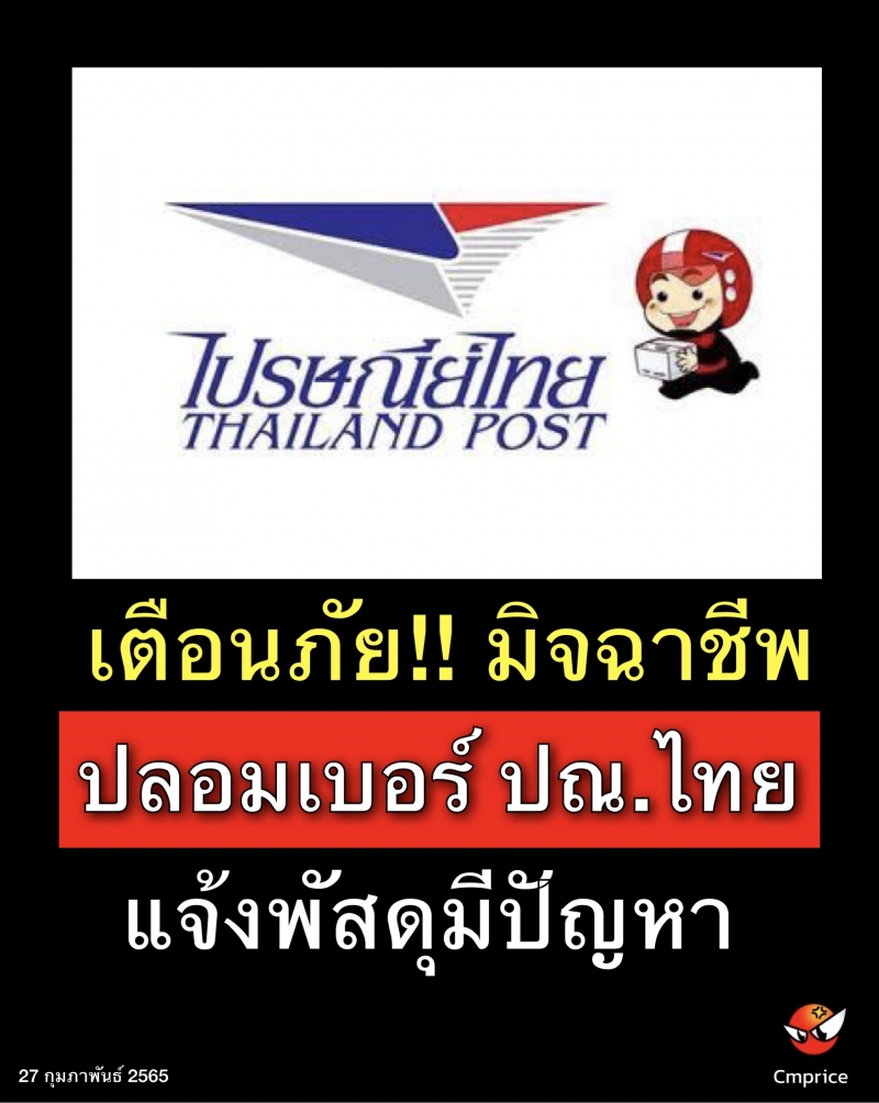 | • เตือนภัย!! มิจฉาชีพ ปลอมเบอร์ ปณ.ไทย แจ้งพัสดุมีปัญหา |