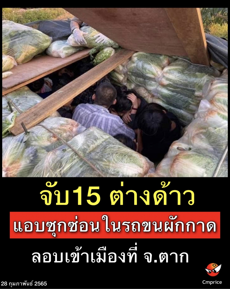 | • จับ15 ต่างด้าว แอบซุกซ่อนในรถขนผักกาด ลอบเข้าเมืองที่ จ.ตาก |