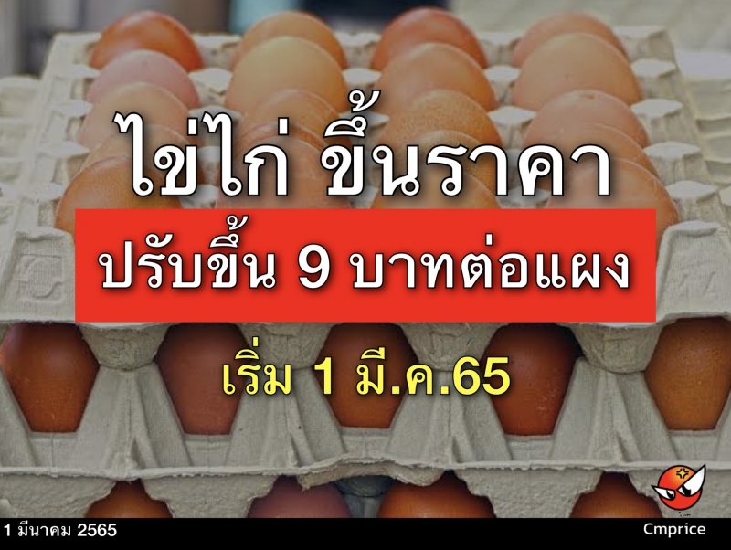 | • ไข่ไก่ ขึ้นราคา ปรับขึ้น 9 บาทต่อแผง เริ่ม 1 มี.ค.65 |