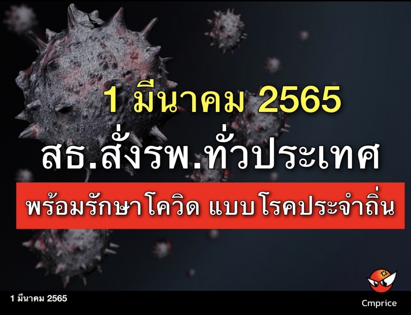 | • 1 มีนาคม 2565 สธ.สั่งรพ.ทั่วประเทศพร้อมรักษาโควิด แบบโรคประจำถิ่น |