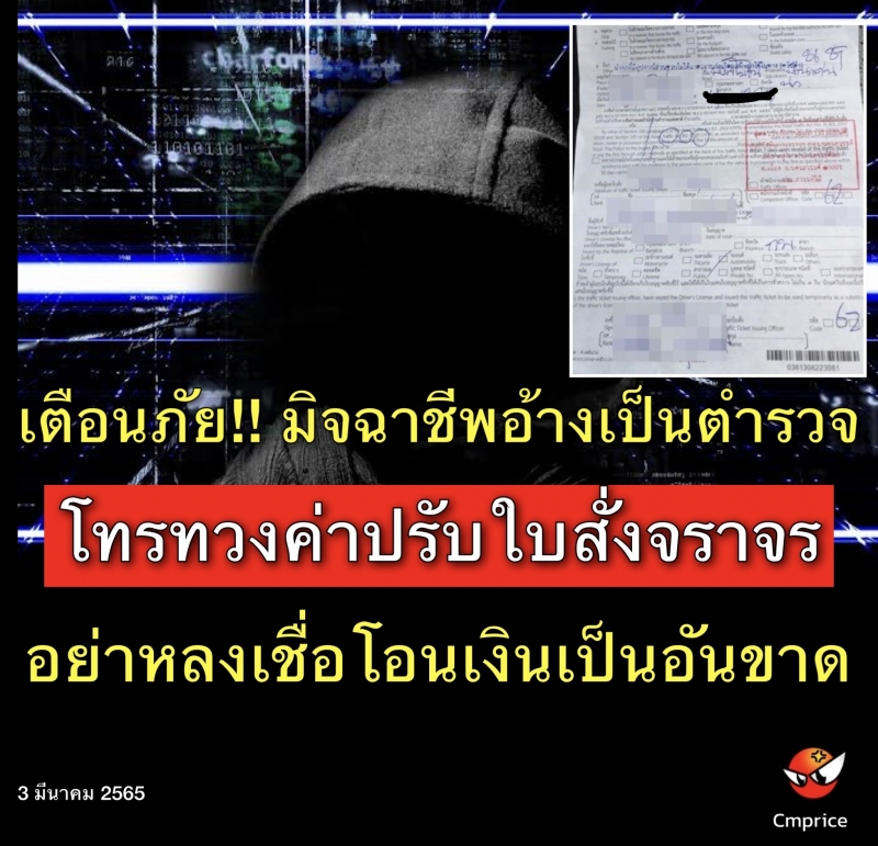 | • เตือนภัย ! มิจฉาชีพอ้างเป็นตำรวจ โทรทวงค่าปรับใบสั่งจราจร อย่าหลงเชื่อโอนเงินเป็นอันขาด |